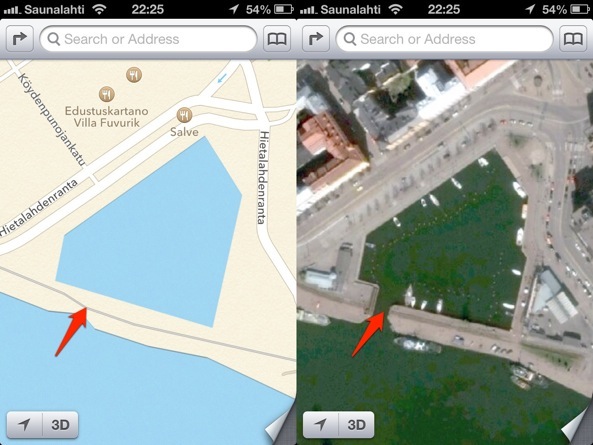 For instance, Apple’s vector maps loaded while in San Francisco, Calif. can still be browsed on a flight from Anchorage, Alaska to Lima, Peru, according to AppleInsider. The writer was able to navigate across the state and via street-level maps as far west as Salt Lake City, Utah — and in 3D, to boot. By comparison, Google Maps, which use bitmap tiles, would let you navigate offline for about a 10 mile radius before complaining.(...) "Apple Maps offers automatic caching for offline navigation" is an article by iDownloadBlog.com. |